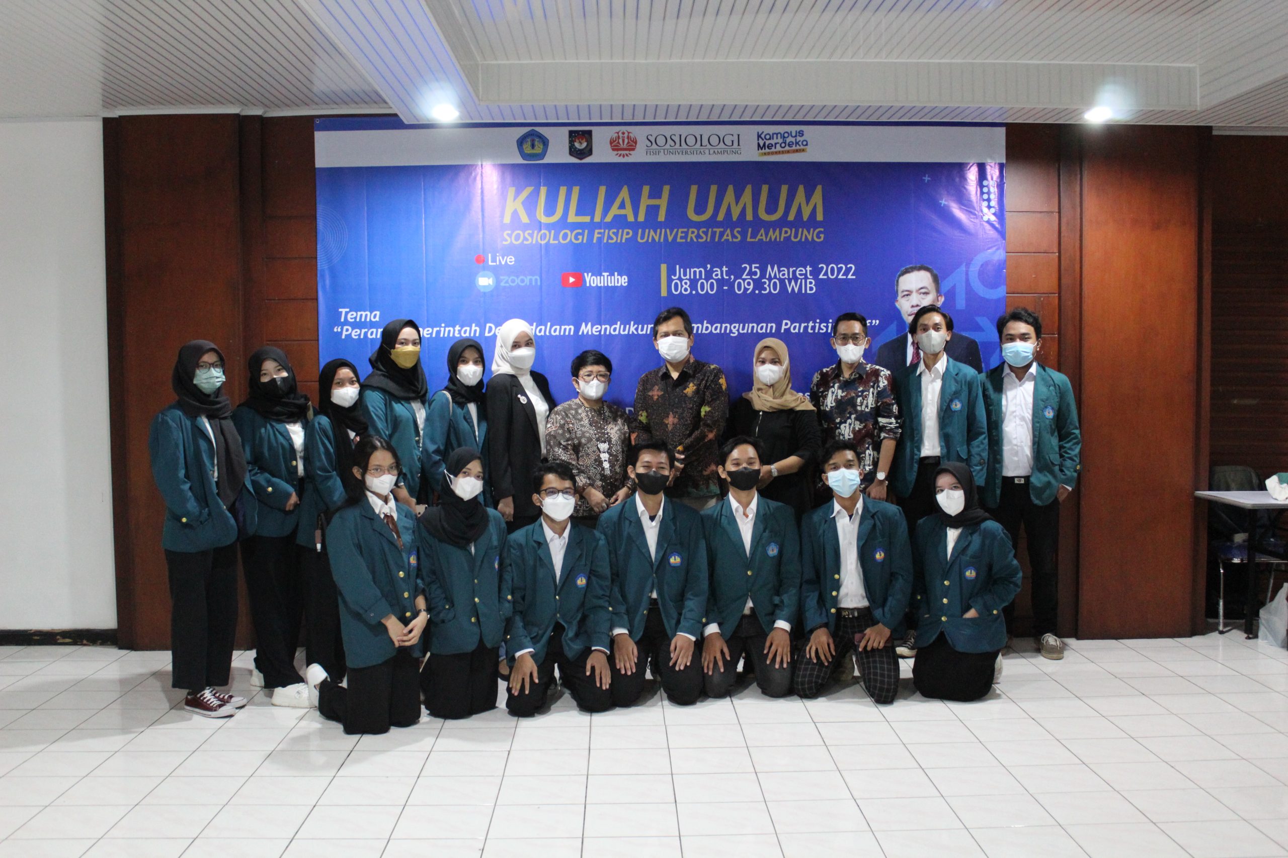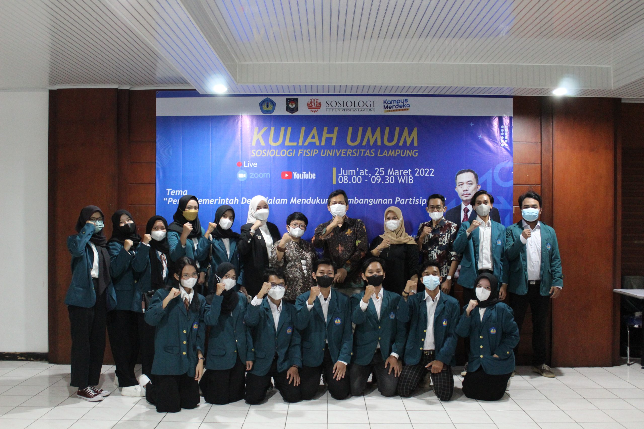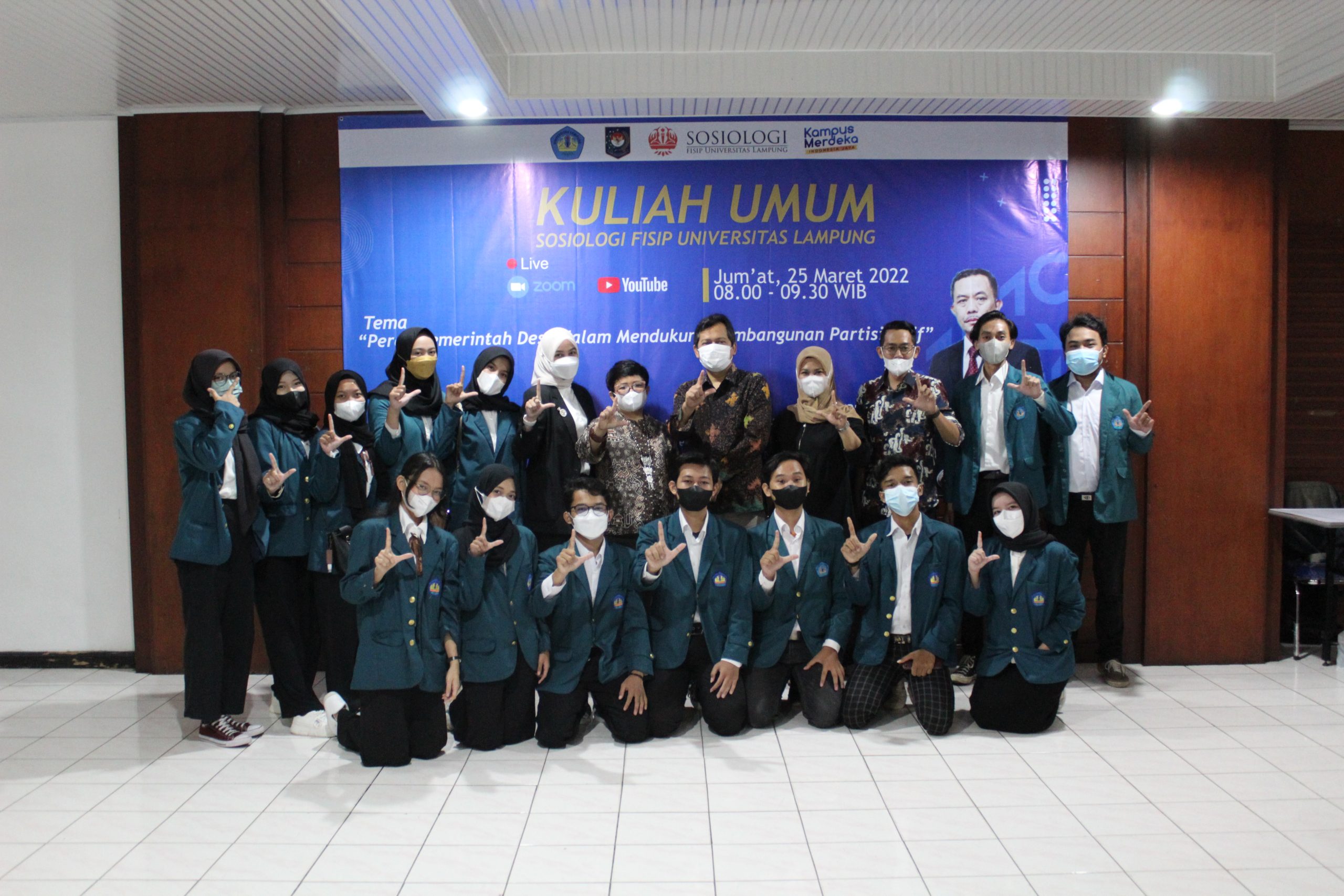 Bandar Lampung, (25/3/22) – Jurusan Sosiologi FISIP Unila menggelar kegiatan kuliah umum dengan tema “Peran Pemerintah Desa dalam Mendukung Pembangunan Partisipatif”, kegiatan ini dilaksanakan secara Hybrid pada Jum’at, 25 Maret 2022 di Ruang Sidang Rektorat Lantai 2 Unila dan Zoom Meeting.