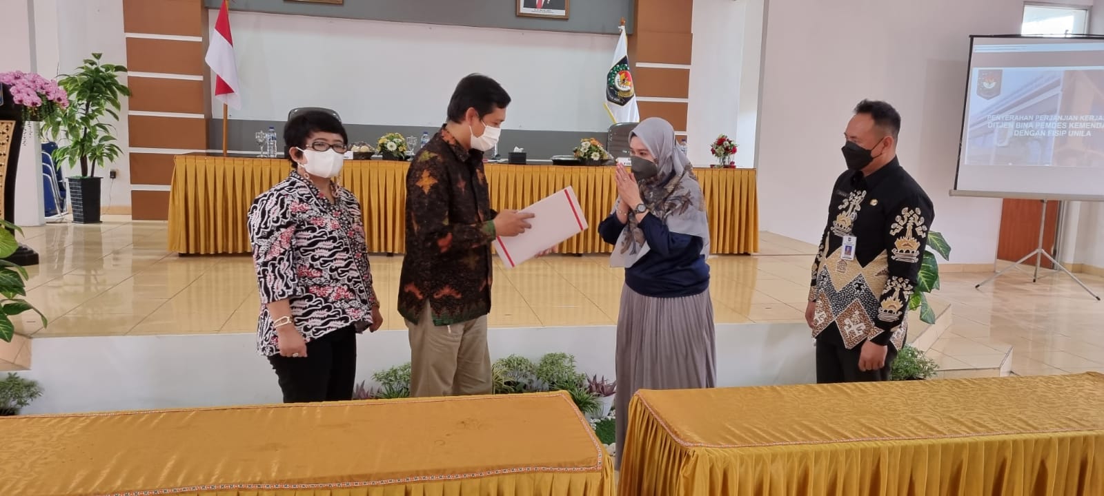 Bandar Lampung – hari ini Jumat tanggal 15 Oktober 2021 dilakukan Penandatanganan Kerja Sama antara Fakultas Ilmu Sosial dan Ilmu Politik Universitas Lampung dengan Dirjen Bina Pemdes sebagai implementasi program Merdeka Belajar-Kampus Merdeka. Penandatangan kerja sama dilakukan secara langsung di Kantor Balai Pemdes Lampung pada pukul 10.00 WIB. Acara ini dipimpin oleh Kepala Balai Pemdes Lampung Irsan,SH,M.Si,Ph.D. dan dihadiri oleh Kepala Bagian Perundang Undangan, Indah Ariyani SH,MP. Sebagai perwakilan dari Dirjen Bina Pemdes Kemendagri. Perwakilan dari FISIP Unila antara lain Dr. Dedy Hermawan, M.Si. selaku Wakil Dekan Bidang Akademik dan Kerjasama FISIP Unila, Dr. Bartoven Vivit Nurdin, M.Si selaku Ketua Jurusan Sosiologi FISIP Unila bersama dengan Damar Wibisono, M.A. dan Ifaty Fadliliana Sari, M.A.